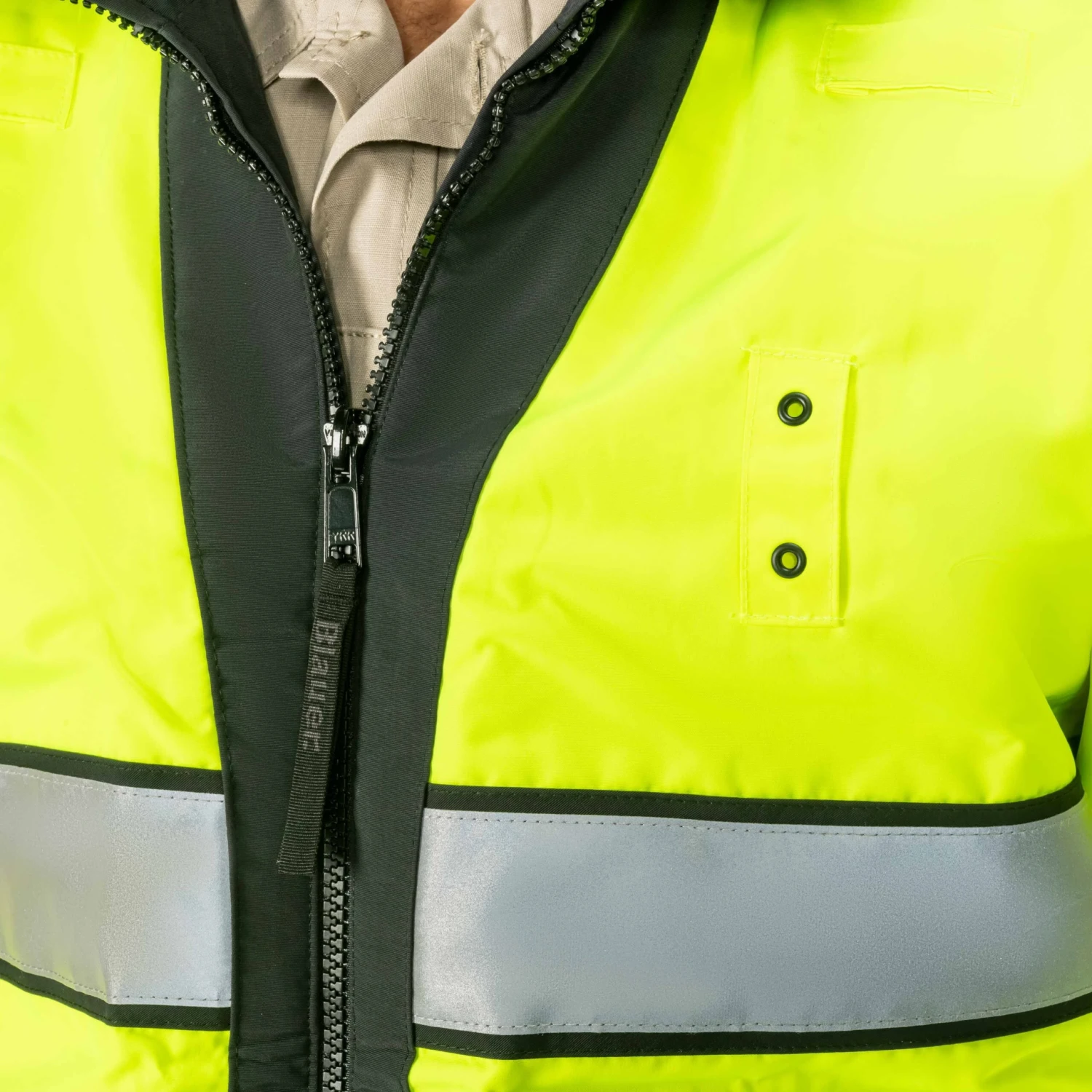 - 2″ SCOTCHLITETM band around chest and sleeves on hi-vis side