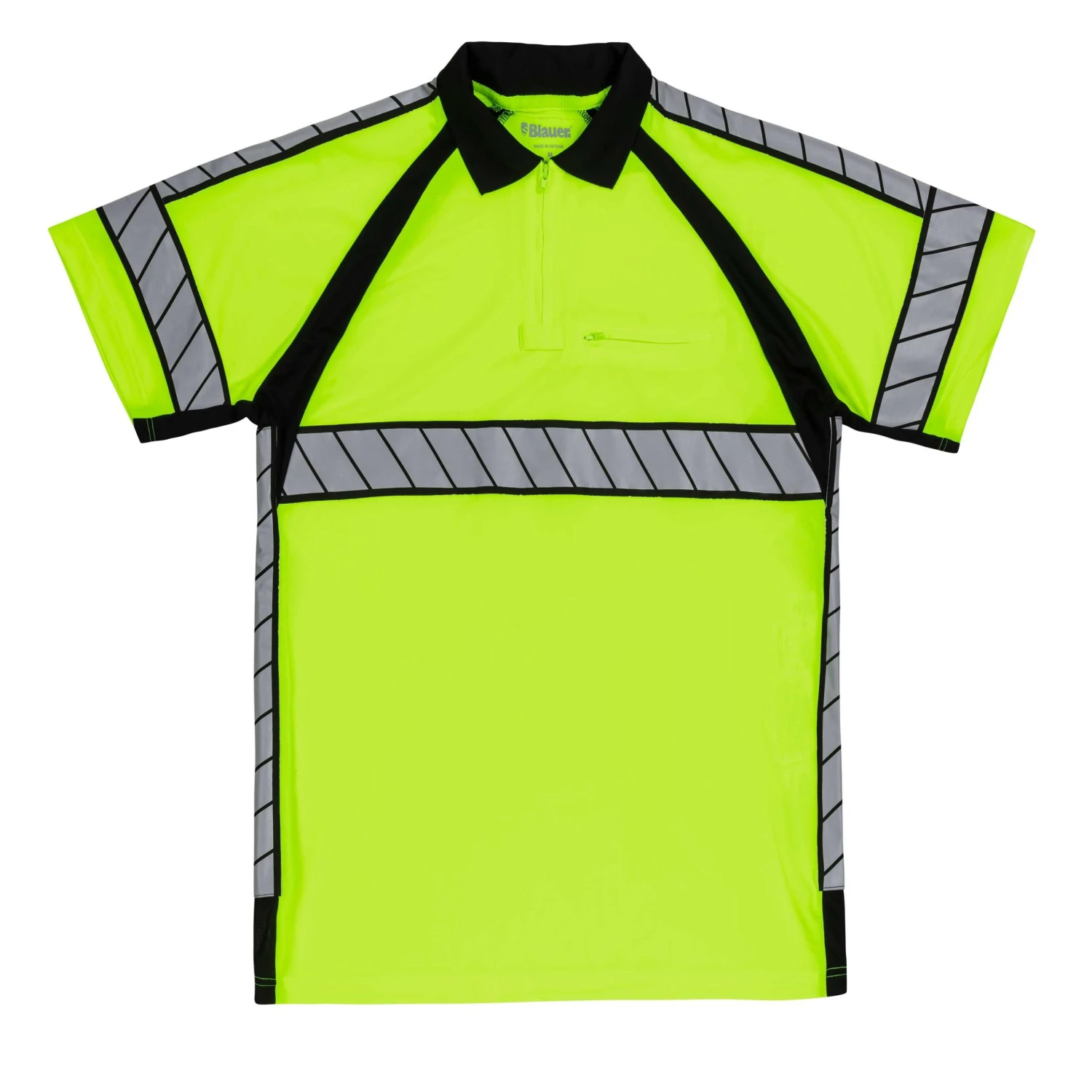 Blauer hi-visibility polo shirts offer the best combination of comfort and functionality for public safety workers and officials. The 8137 Hi-Vis Polo Shirt is made of lightweight polyester that wicks away moisture and dries quickly, while accompanying mesh panels add ventilation and airflow. The bright yellow fabric is complemented by 3M™ SCOTCHLITE™ comfort trim crosswalk reflective material and a black knit collar, all of which is carefully designed for a tailored look and fit. Additional moisture-wicking and anti-odor treatments give wearers an all-around professional appearance. Many sizes are available to fit anyone in the field.