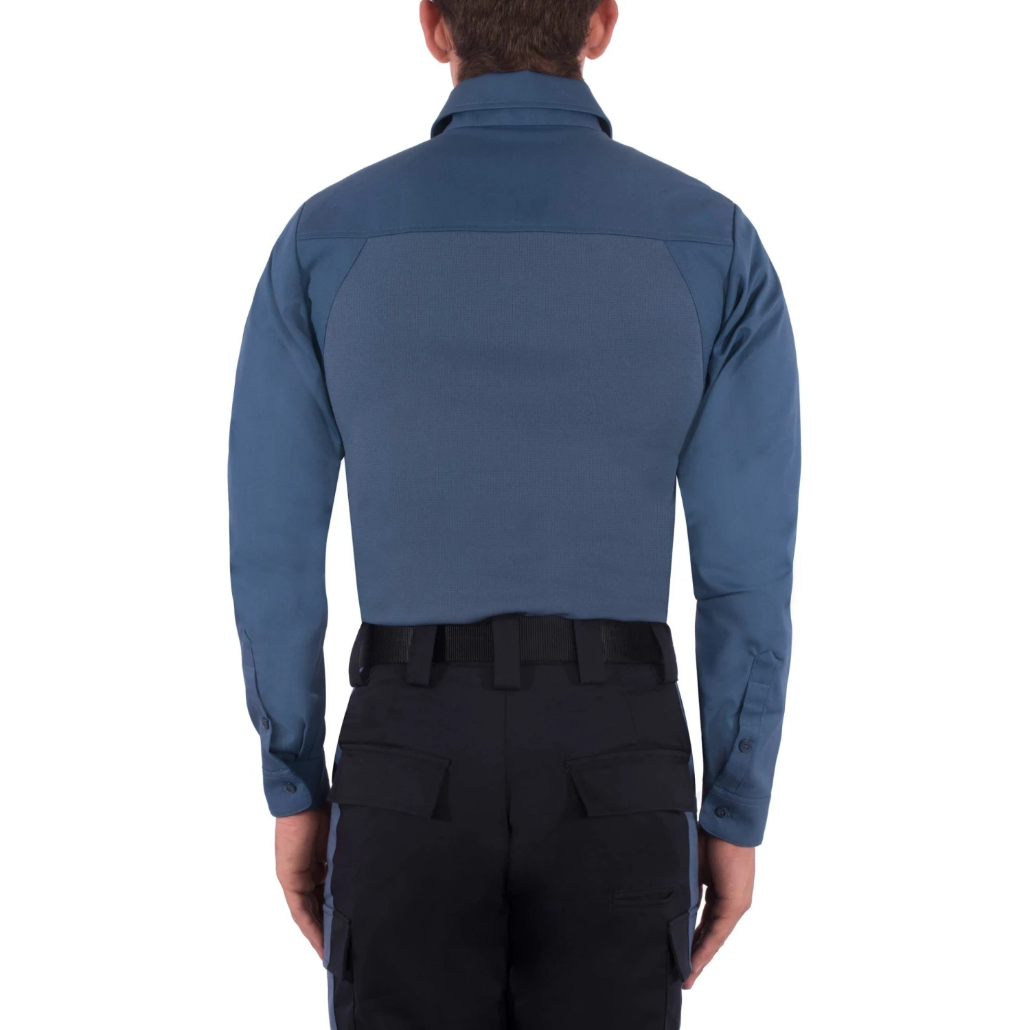 - Durable uniform shirting fabric with breathable, moisture-wicking mesh fabric for both a professional appearance and comfortable fit