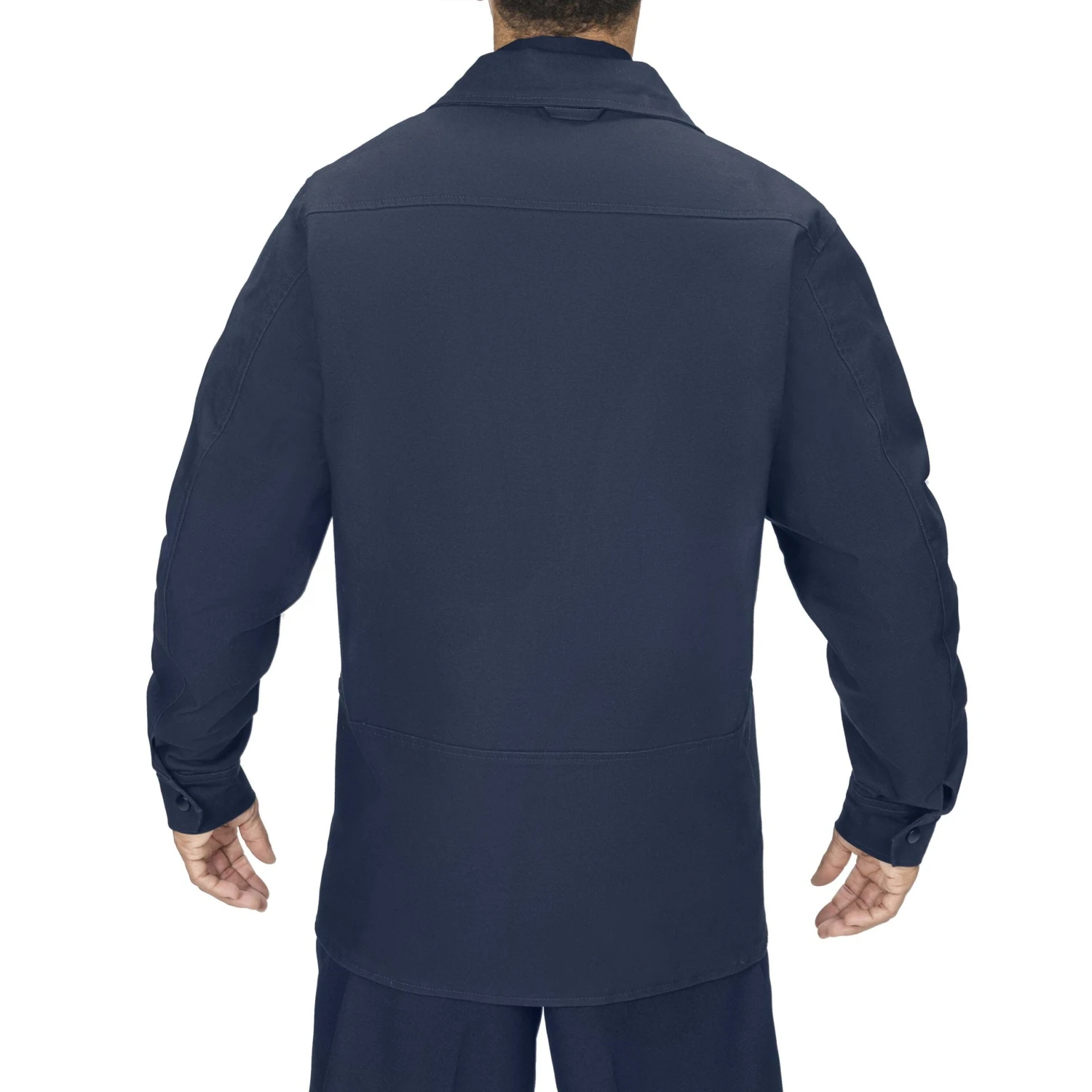 Whether you’re the Engineer on your apparatus or just want water-repellent protection that looks good and hangs tough, Blauer’s Flex Station Jacket is the perfect choice for you. Rugged and durable stretch cotton duck material with bonded fleece lining helps stand up against abrasion from hoses or other rough surfaces, with lockstitched seams for reinforced longevity. Two angled YKK zipper pockets for ergonomic access. Interior radio pocket with a pass-through Napoleon pocket that lets you pull your mic through to hang on the dedicated mic loop. When you add on our extended tail design, you get the perfect station jacket, bar none. Get yours now.
