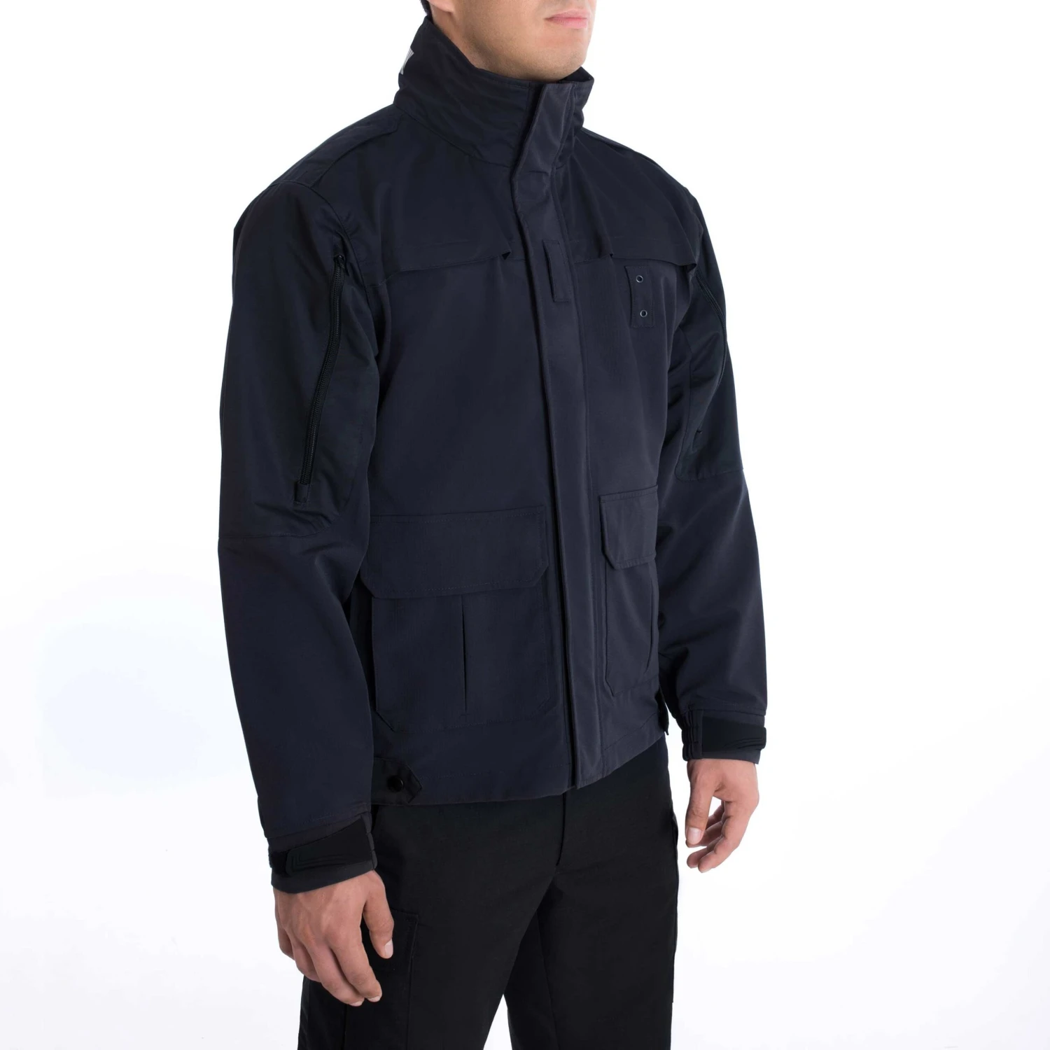 TacShell combines the features found in the best police outerwear and tactical jackets today. Our proprietary Waterproof waterproof, windproof breathable membrane keeps you warm, dry and comfortable, indoors or out. The stretch nylon outershell was developed to create a balance between long years of service life, quiet, and lightweight comfort. Even the ripstop pattern you see is engineered for a purpose, tenacity. The accent patch material, a smooth easy to clean dobby, gives the jacket more character interest.