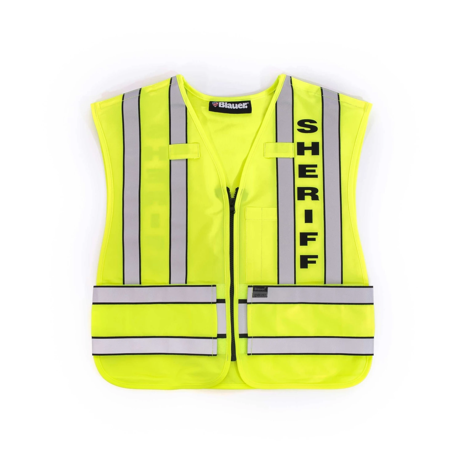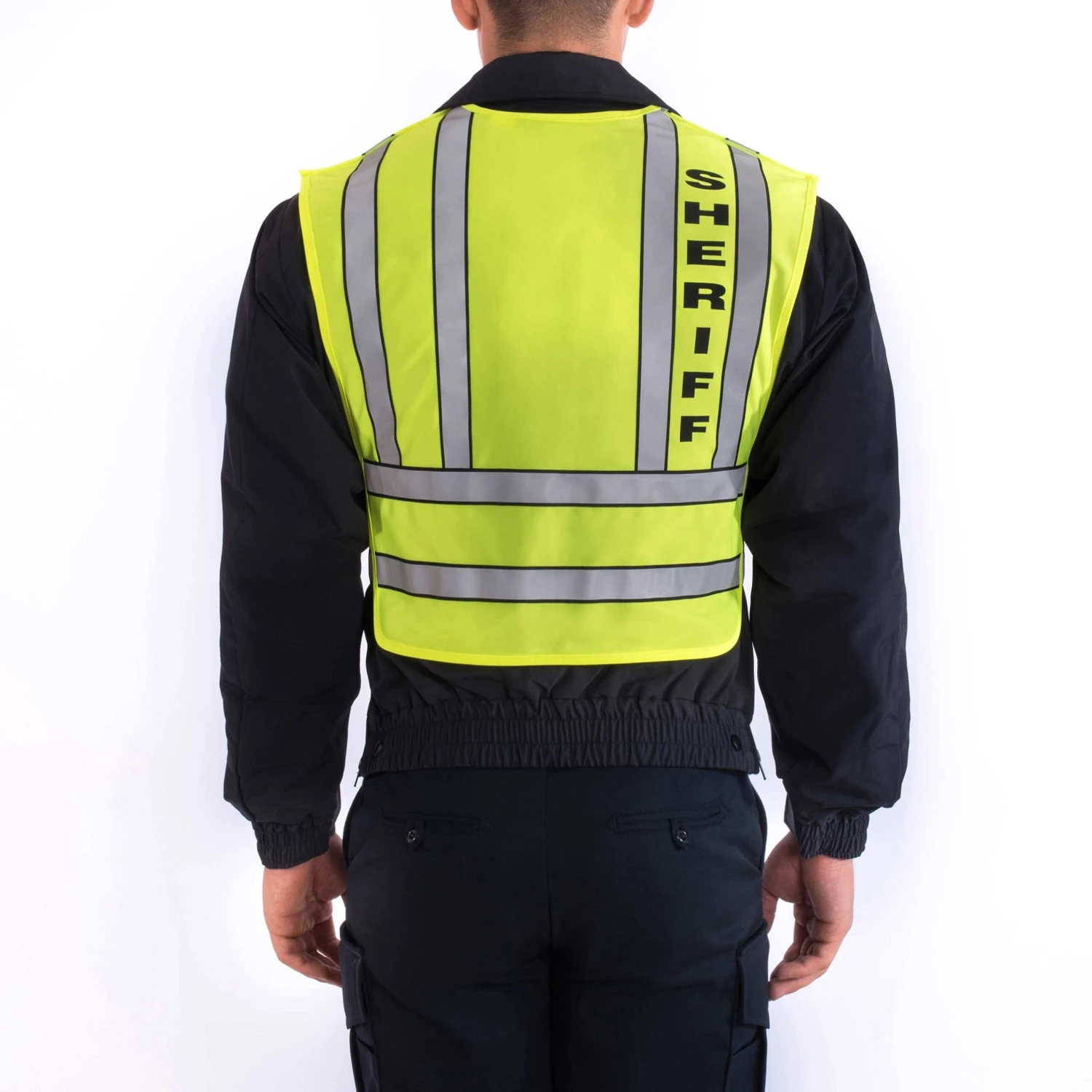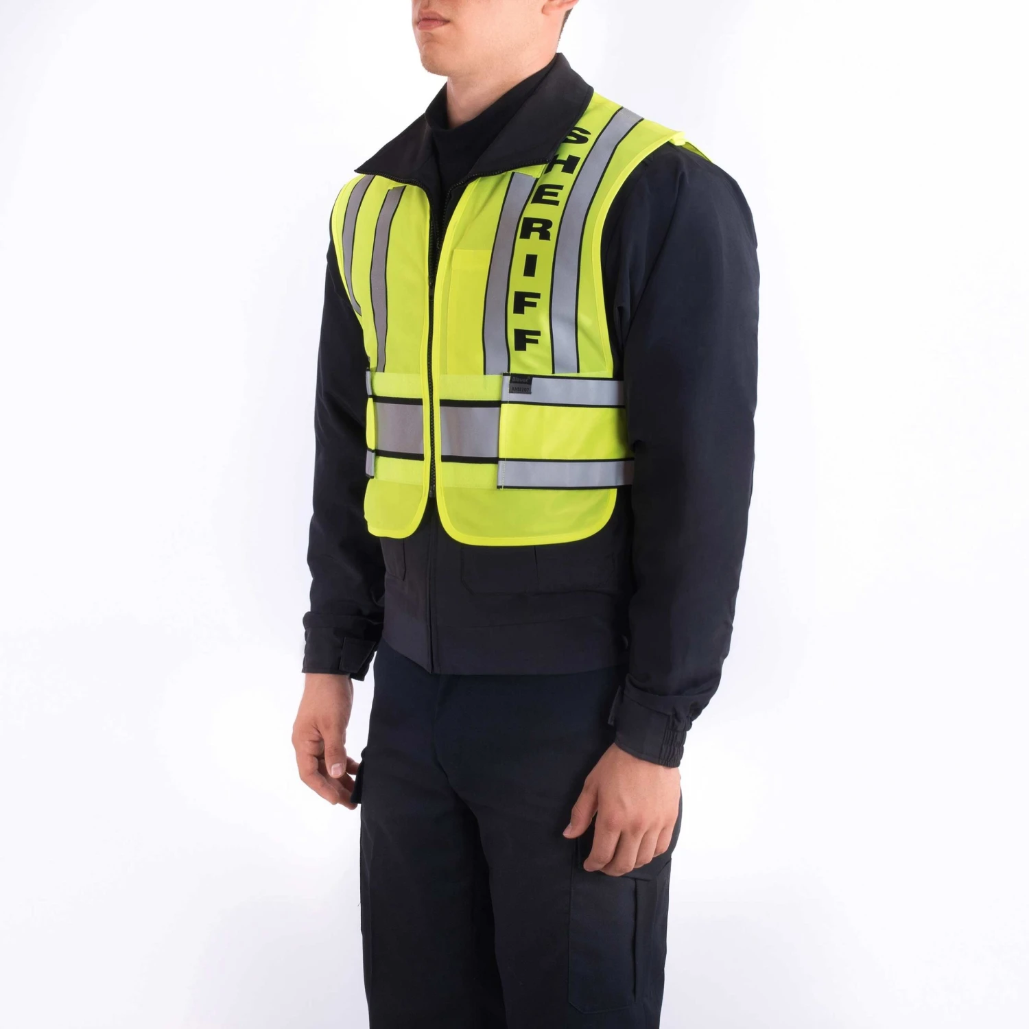 “SHERIFF” text imprinted onto ORALITE®™ zip-front safety vest certified to ANSI 107 Type P Class 2